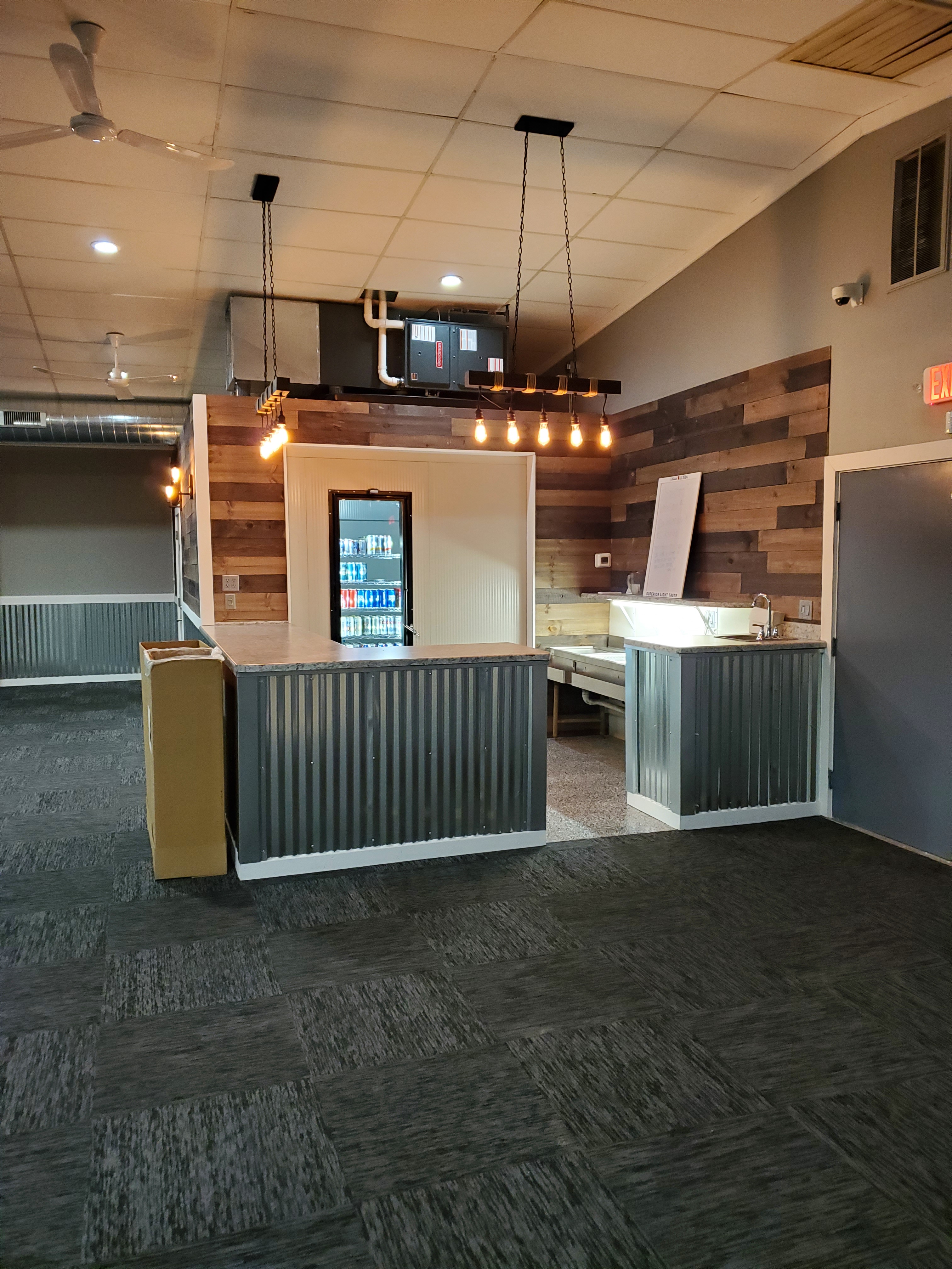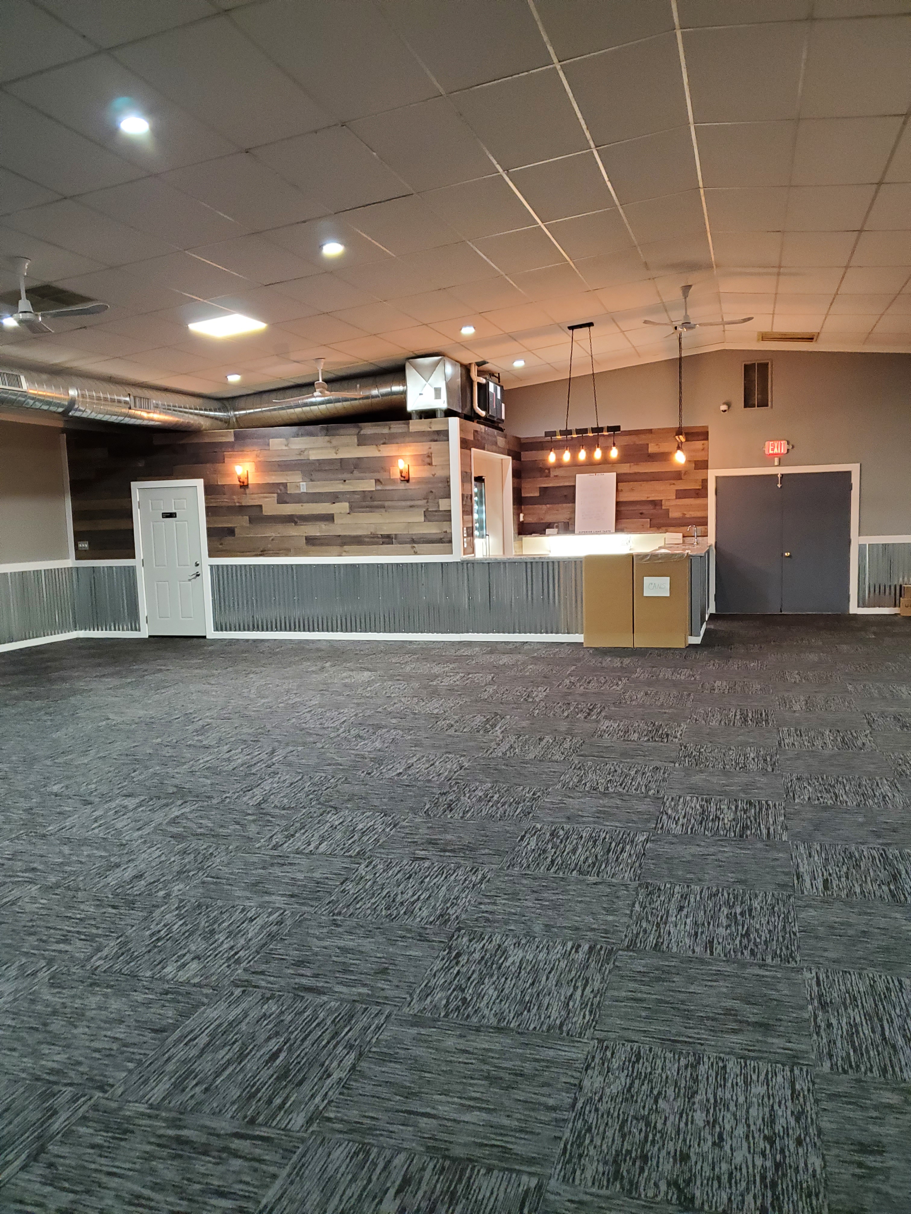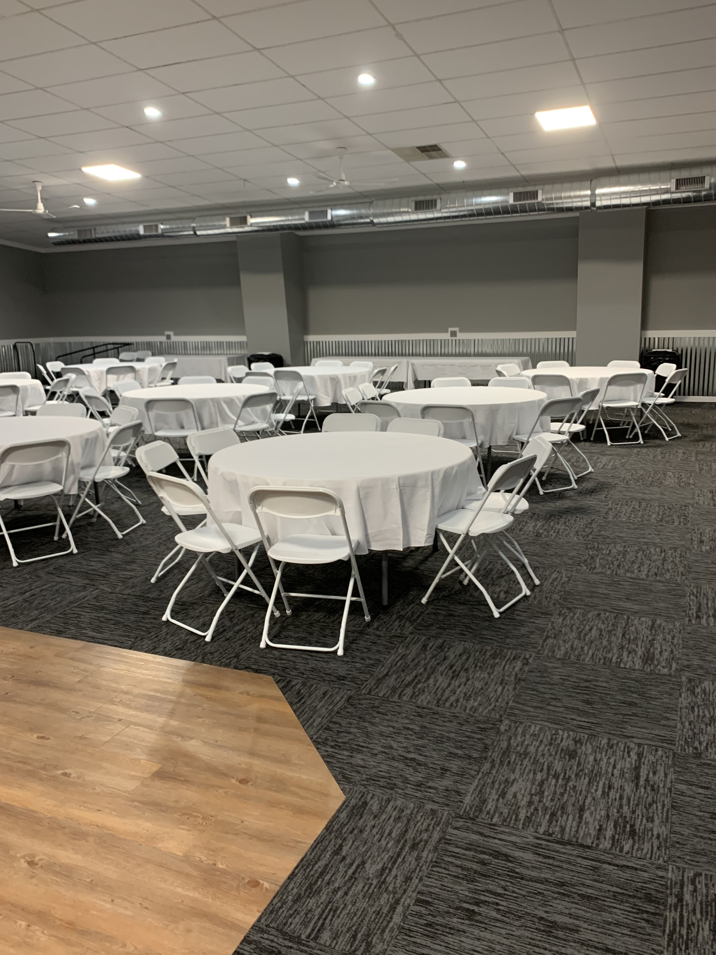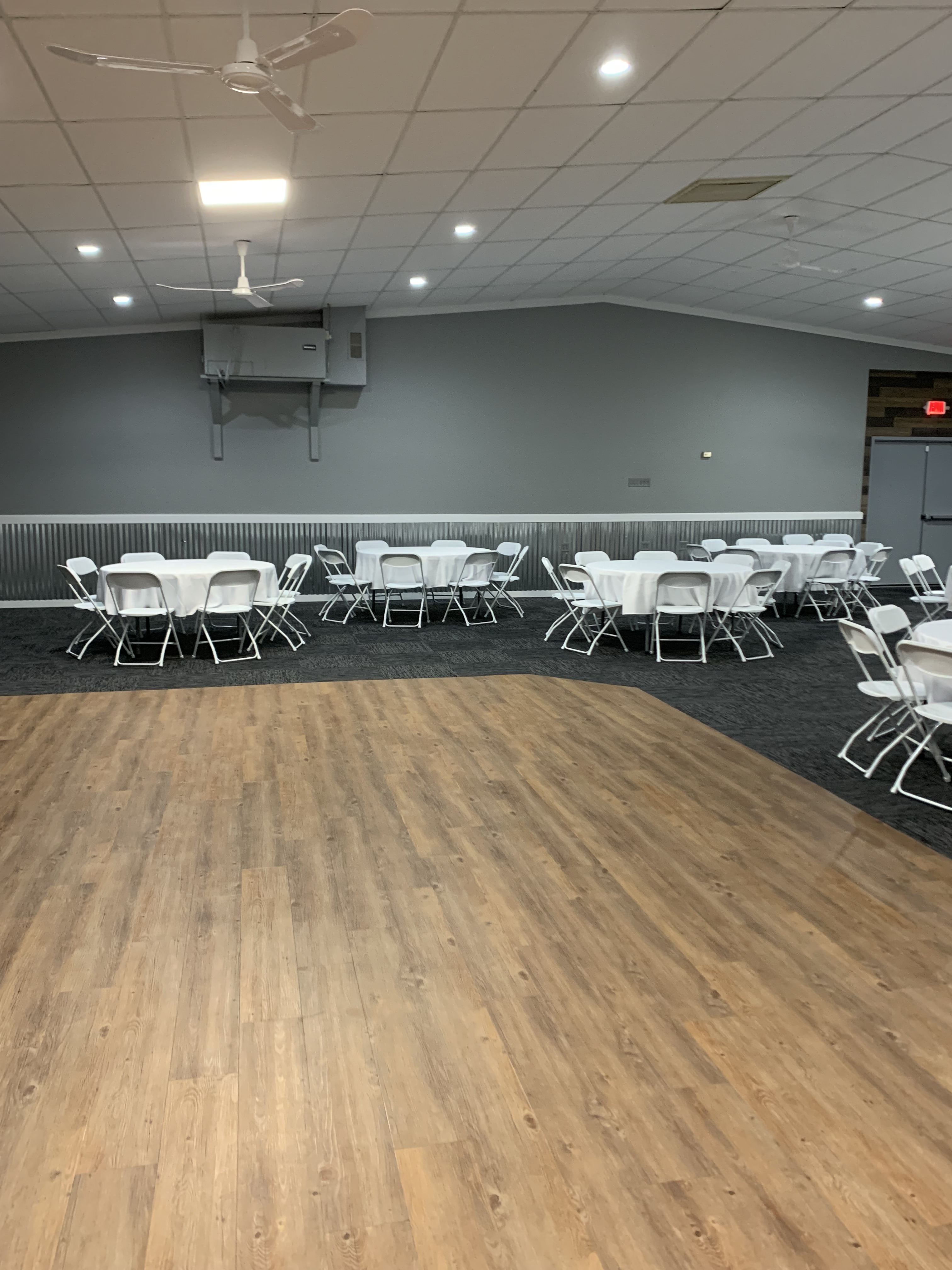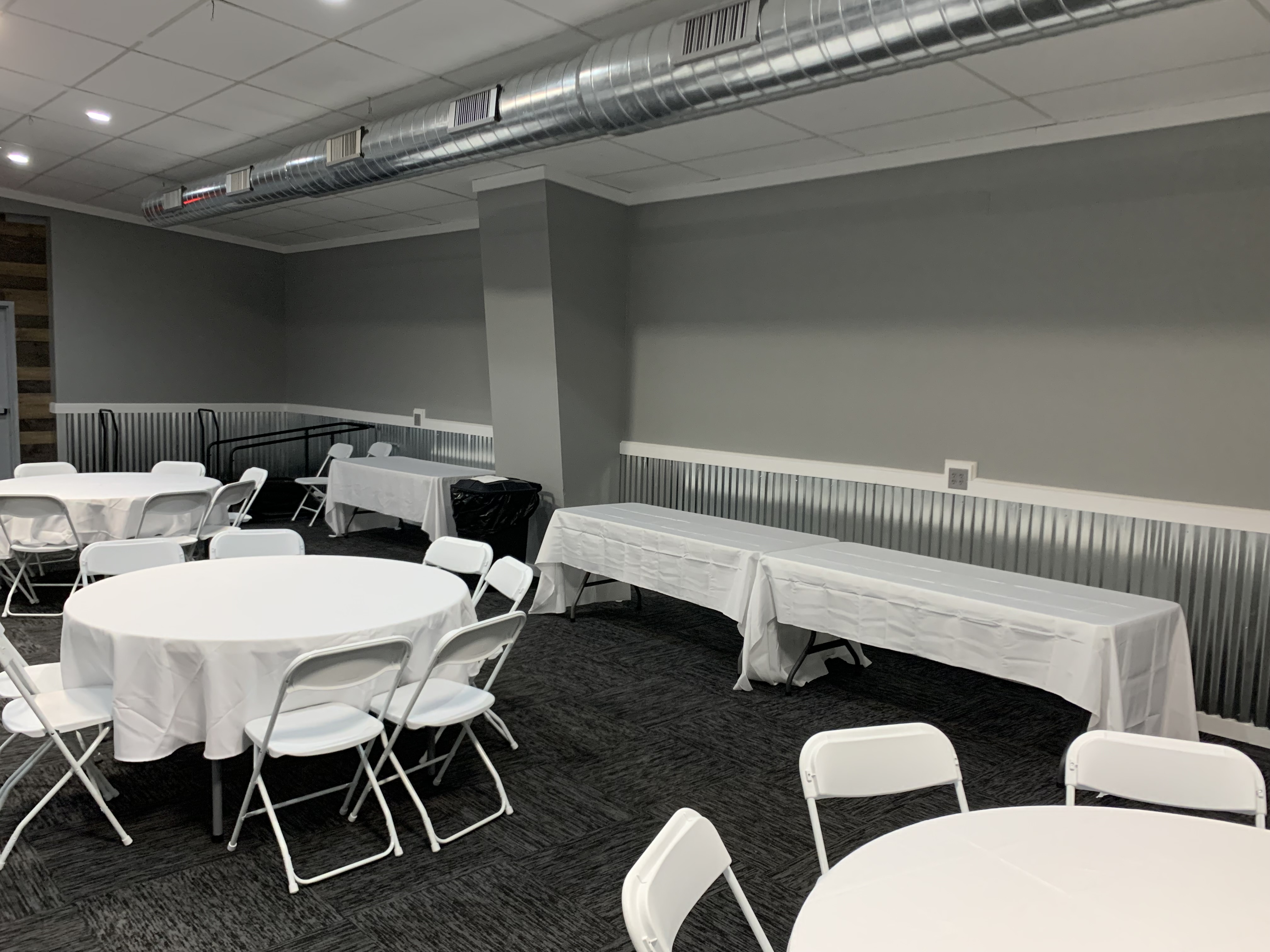 Our venue is spacious with its own bar and we have new tables and seating for 100 people. It is perfect for meetings, celebrations, birthdays and weddings. We are booking events now!